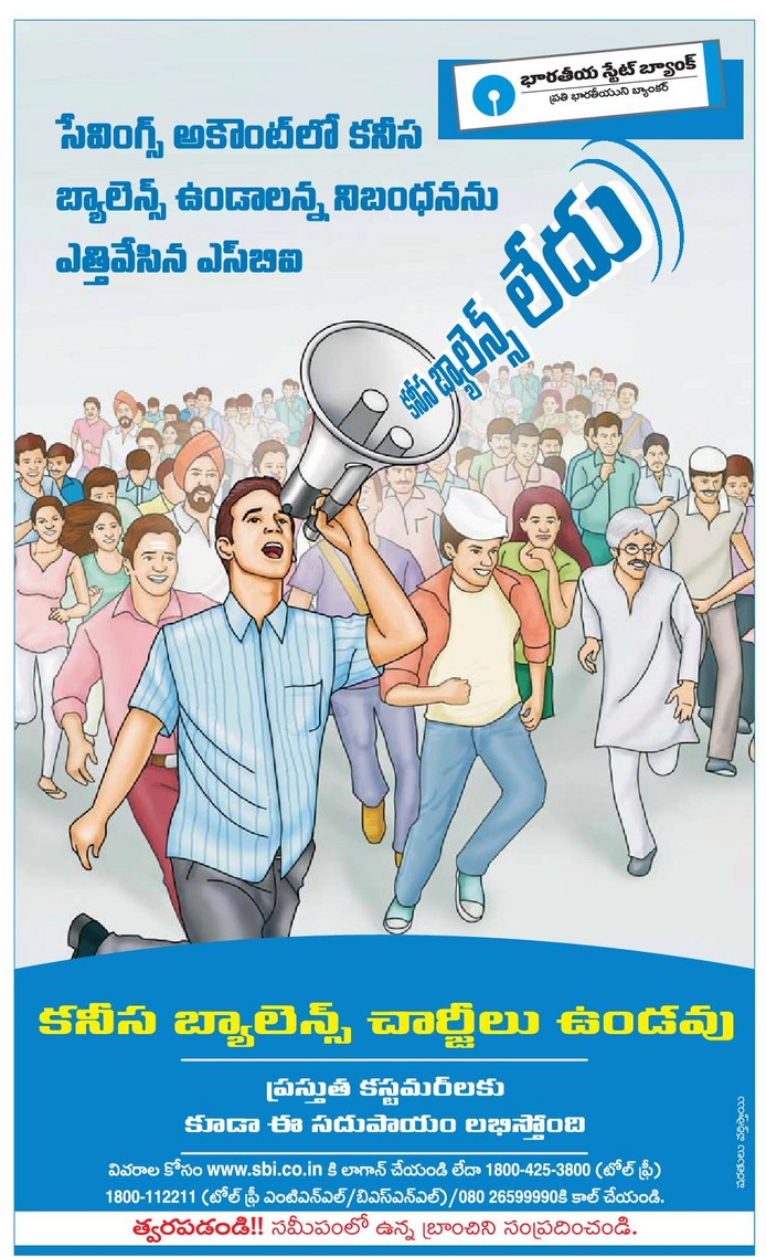 SBI announced that nowowards no need to maintain minimum balance in savings accounts.